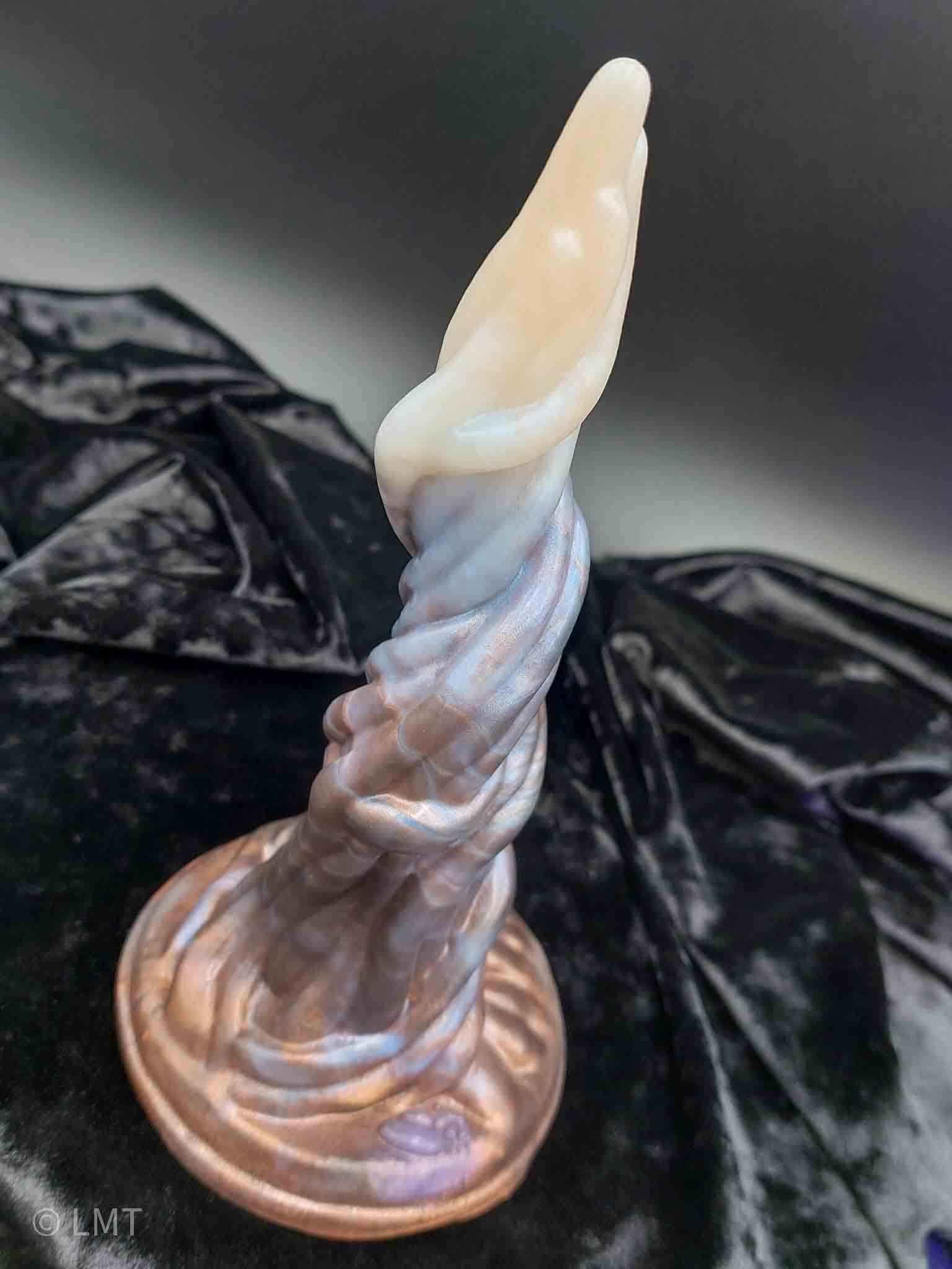 A writhing mass of friendly tentacles. Base circumference: 12" Largest girth circumference: 7 1/2" Insertable length: 6 1/2" Total Length: 7"